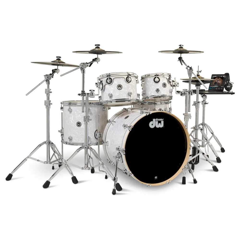 Dejemos una cosa clara: el DWe es, en el fondo, un kit acústico DW de primer nivel. Utilizado nueve veces con arce premium y contundente, cada casco en este paquete de 5 piezas ofrece ese tono de kit envidiable, versátil e icónico que los bateristas aprecian. En este paquete se incluyen toms montados de 8 x 10 pulgadas y 9 x 12 pulgadas, un tom de piso de 14 x 16 pulgadas, un bombo de 16 x 22 pulgadas y una caja de 6,5 x 14 pulgadas. , todos tratados con una experta variedad de hermosas orejetas de torreta cromadas y aros de triple brida de DW. ¿Jazz? ¿Roca? ¿Pop? ¿Metal? ¿Por qué detenerse allí? Esta belleza de arce manejará prácticamente cualquier género con confianza.