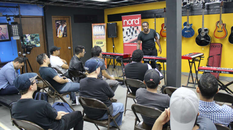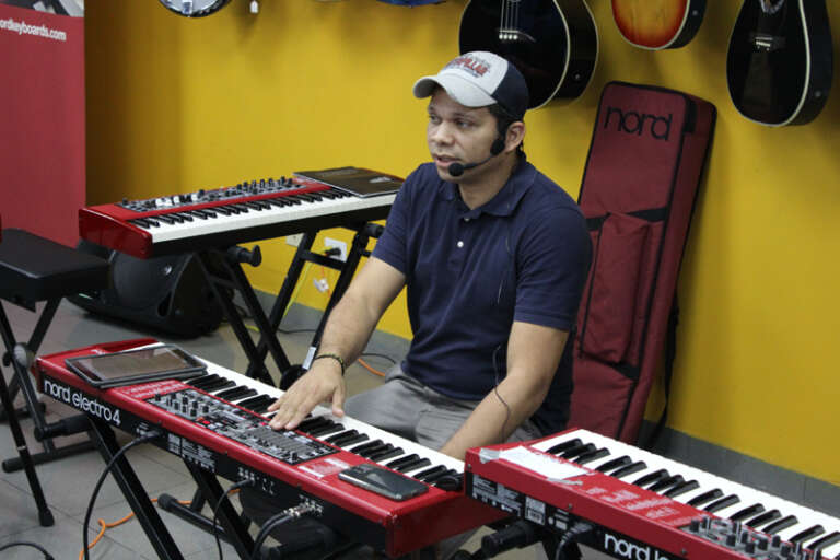 Ibrahim Merel explicó las características del Nord Electro 4, Ox Luna demostró como utiliza el Nord Lead 4, John Clement nos explicó como usa los diferentes sonidos del Nord Stage 2 y Carlos Campos interpretó algunos temas musicales en compañía de sus músicos.